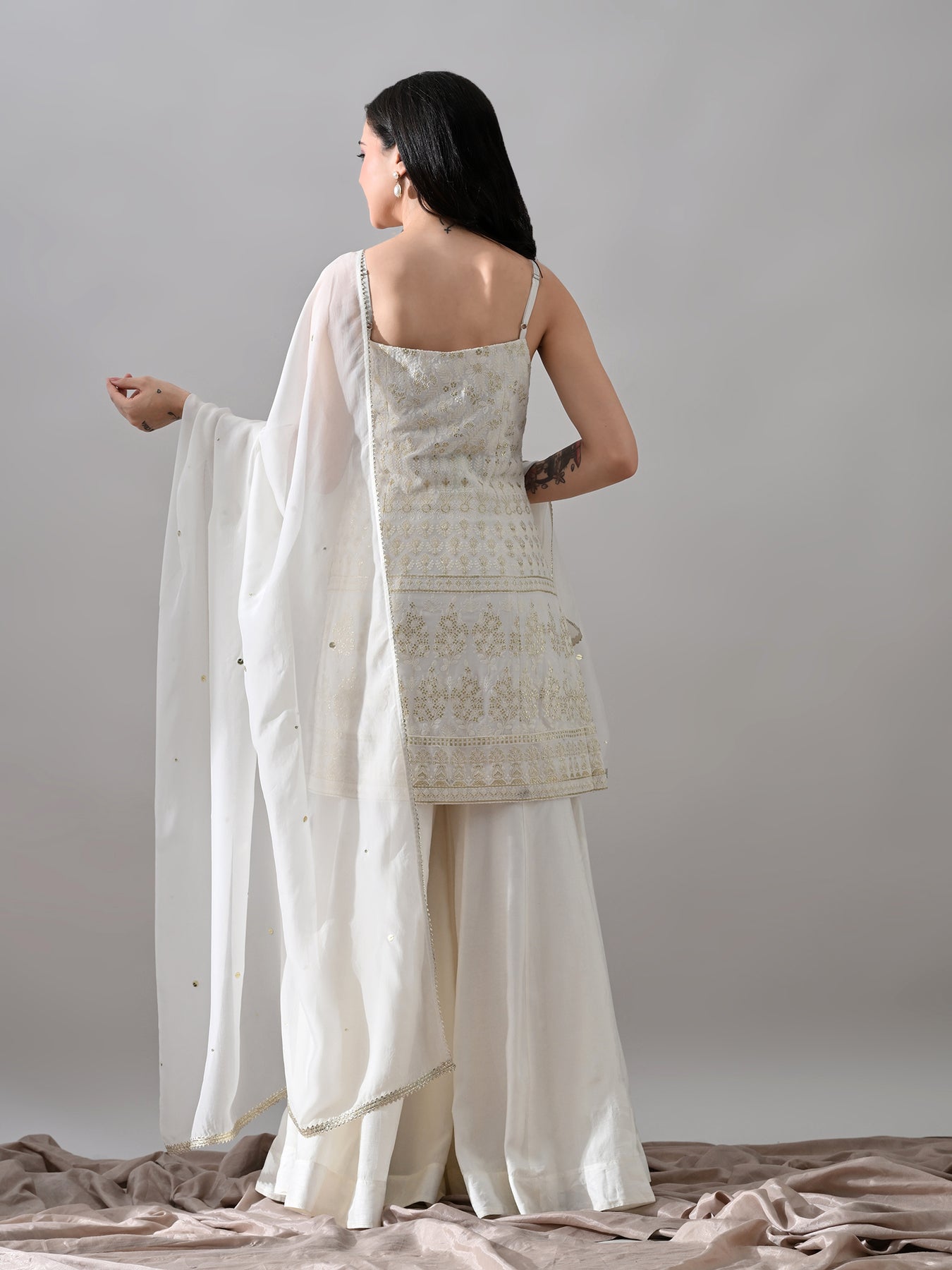 Alaya White Chikankari Indo-Western Sharara Set (White)