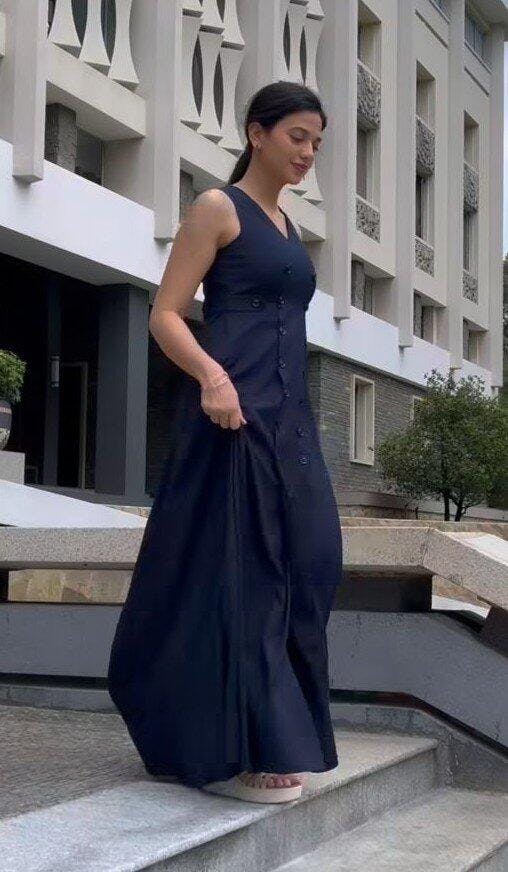 Amelia relaxed-fit Western Wear dress in a denim blue is a truly versatile piece. This relaxed fit and flowing silhouette make it ideal for a laid-back yet polished look. Made from premium fabric, it offers a soft feel and beautiful drape, perfect for all-day wear.