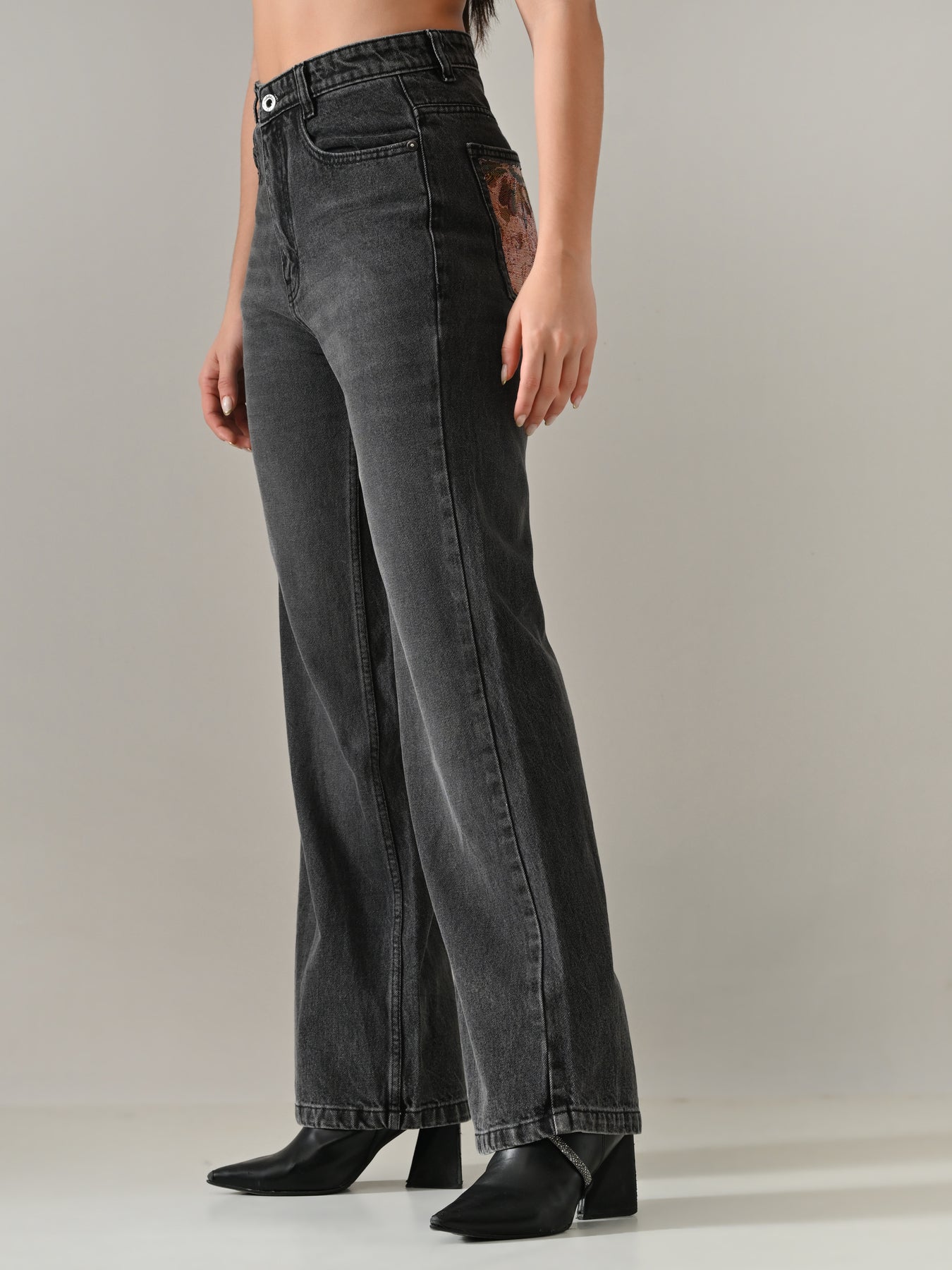 Style – Denim Pants with Statement Back Pocket