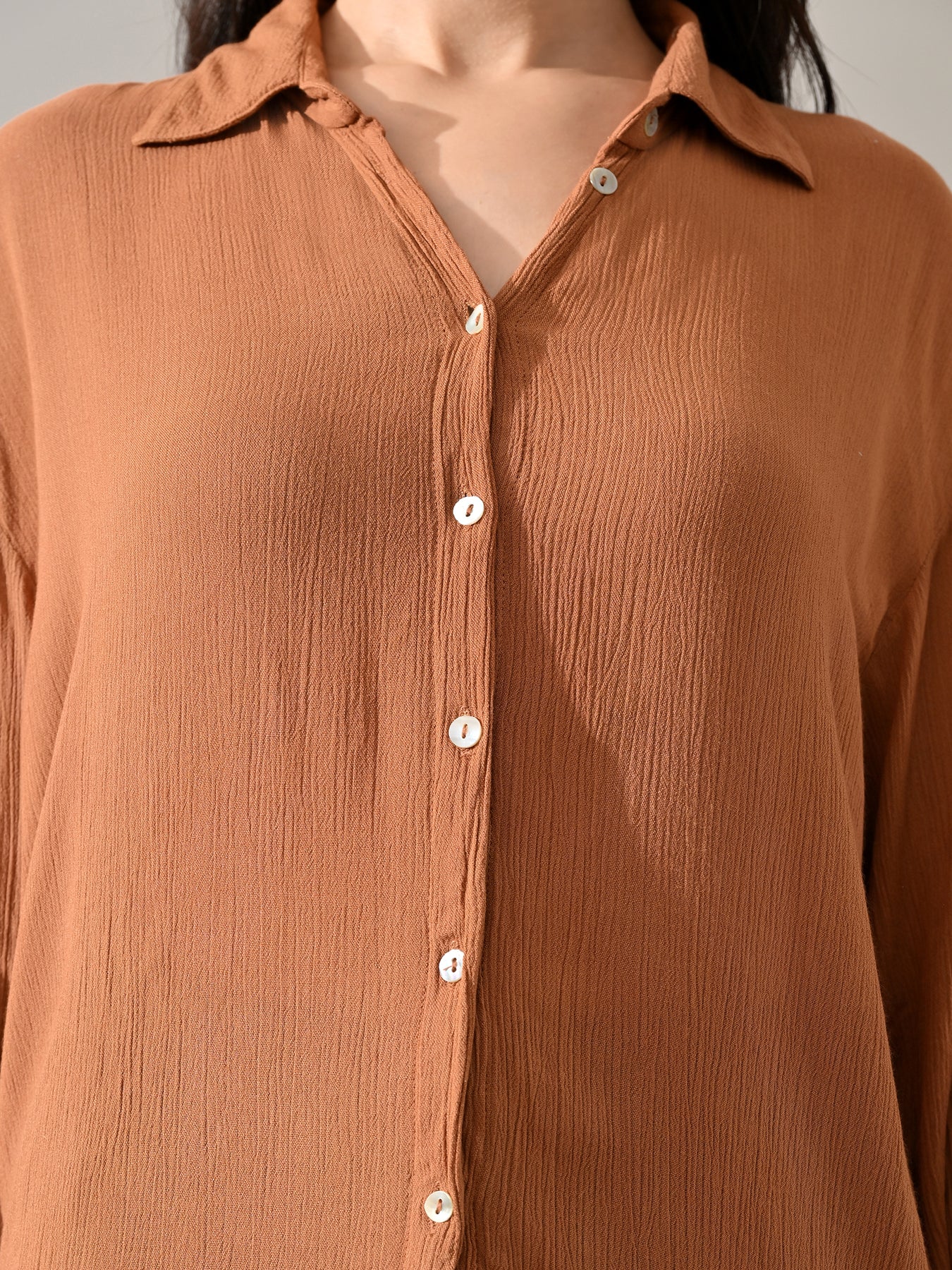 Caramel Crinkle Cotton Western Shirt (Brown)