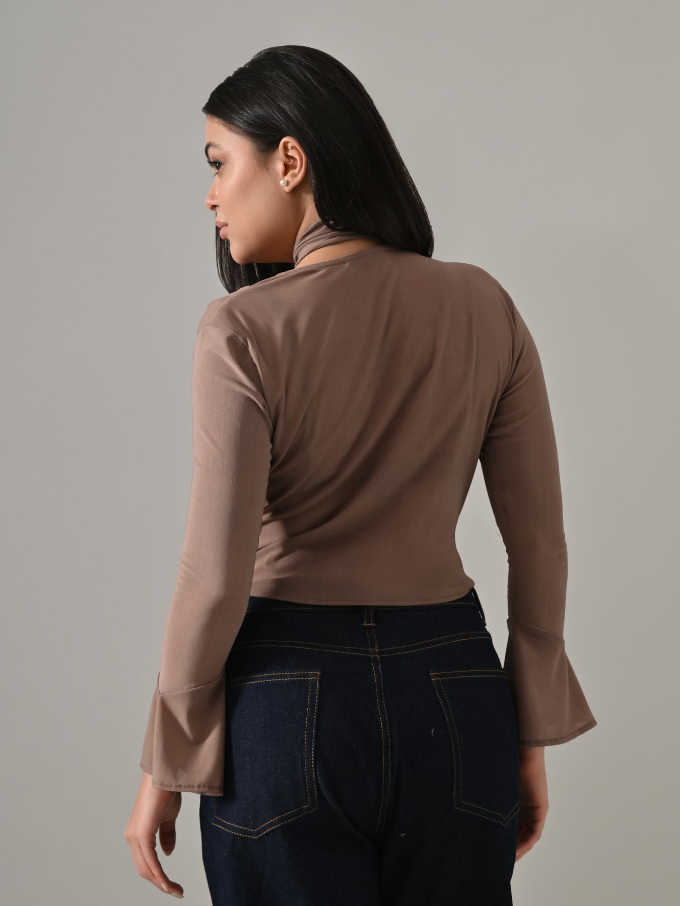 Stylish, contemporary, and effortlessly versatile, the Dacota Fawn Mesh Cowl Neck Top is designed to bring a chic touch to any outfit. Crafted in a soft, breathable mesh fabric, this top features a cowl neck and an extra-long strip for creative styling, allowing you to tie or drape it in multiple ways.
