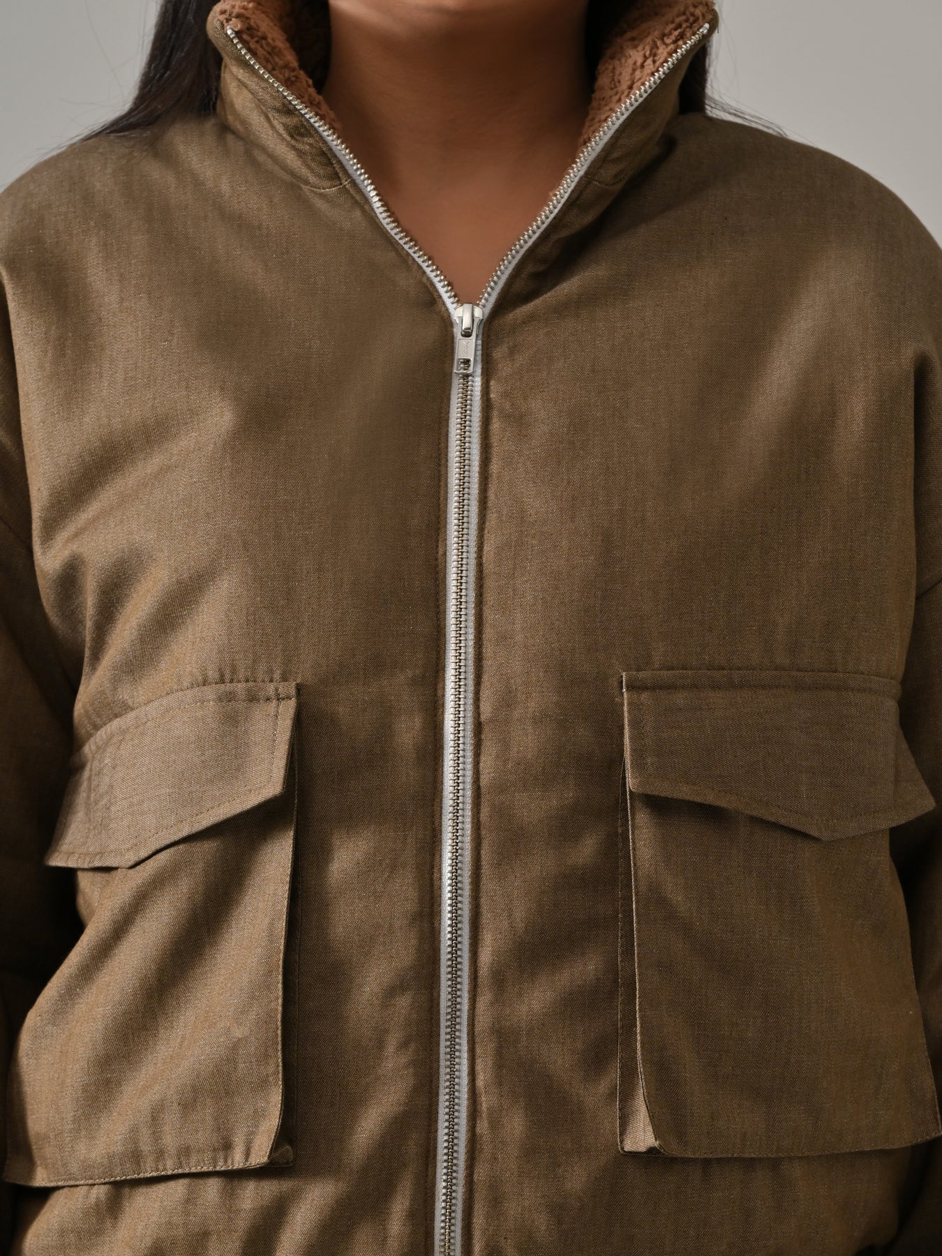 Drew – Brown Sherpa-Lined Non-Denim Jacket
