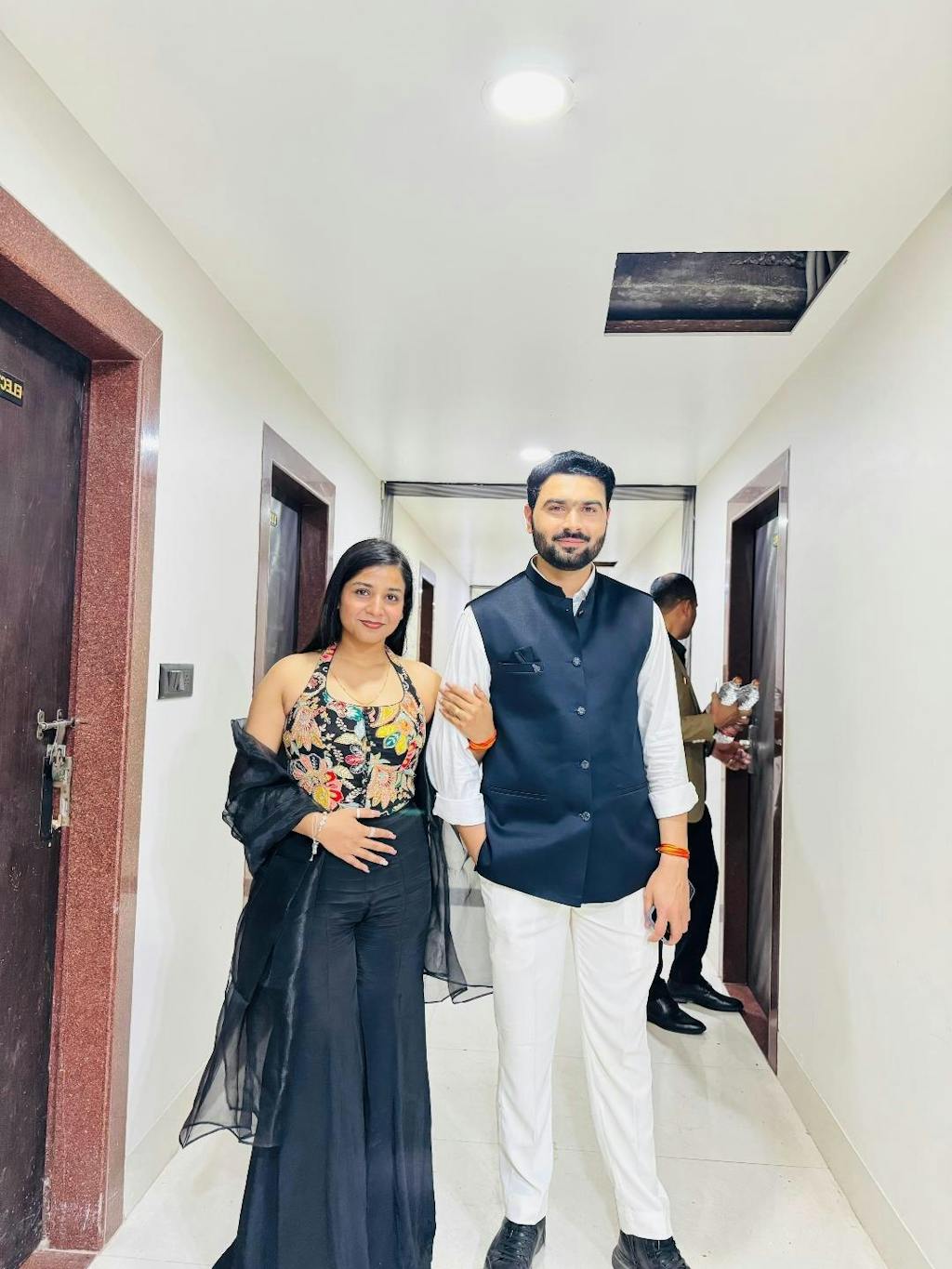 The Kesha Sharara Set is a chic Indo-Western ensemble that redefines festive elegance with its sleek and contemporary design. Crafted in luxurious black crepe fabric, the set features a finely tailored top paired with coordinated sharara bottoms for a refined yet modern silhouette. A matching dupatta in lightweight fabric with subtle detailing completes the look, making it a versatile choice for weddings, cocktail evenings, or festive occasions.