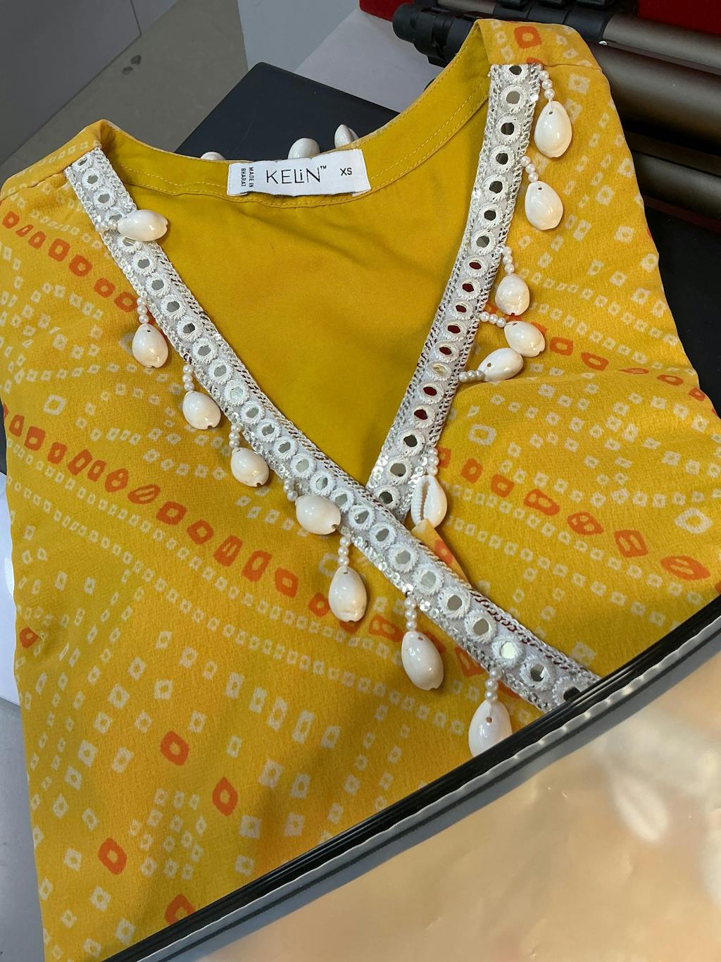 The Kiara Indo-Western Angrakha Sharara Set combines traditional Bandhani print with a contemporary twist. Crafted to create a fusion of elegance and style, this set features an angrakha-style top paired with a flowy sharara, perfect for festive occasions or celebrations. The Bandhani print adds a touch of heritage, while the modern silhouette makes it versatile and chic.