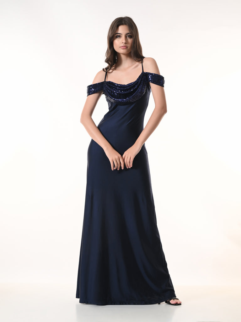 Make an unforgettable statement with the NASHIRA Dress, a striking western silhouette designed for glamorous evenings. Crafted from smooth lycra fabric and elevated with a delicate embroidered mesh neckline, this dress offers a flawless blend of elegance and allure. The off-shoulder design with subtle straps highlights the neckline beautifully, while the fluid maxi length creates a graceful, elongated look. Perfect for parties, cocktail nights, and special occasions, the Nashira Dress is made for confident, modern styling.