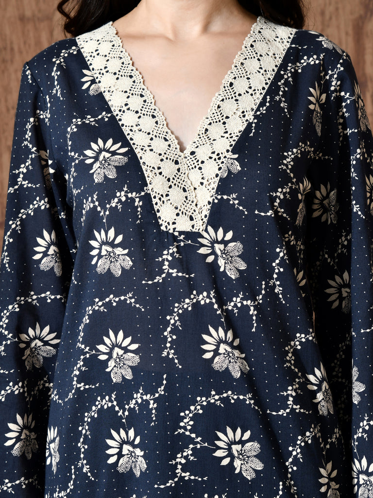 Rumi cambric kurta set in dark blue is a beautiful expression of ethnic charm blended with everyday comfort. Crafted from soft and breathable cambric fabric, this kurta set is perfect for traditional gatherings, casual festive events, or relaxed ethnic wear. The subtle design and graceful silhouette bring out understated elegance, making it a versatile addition to your wardrobe.