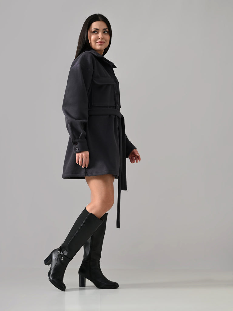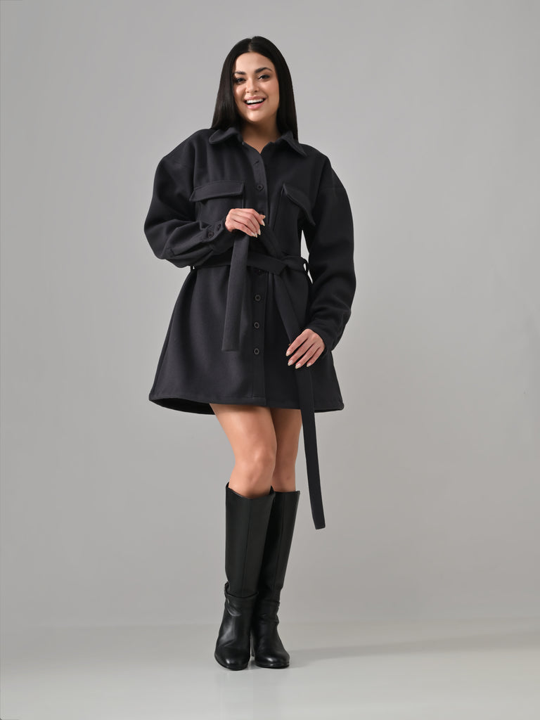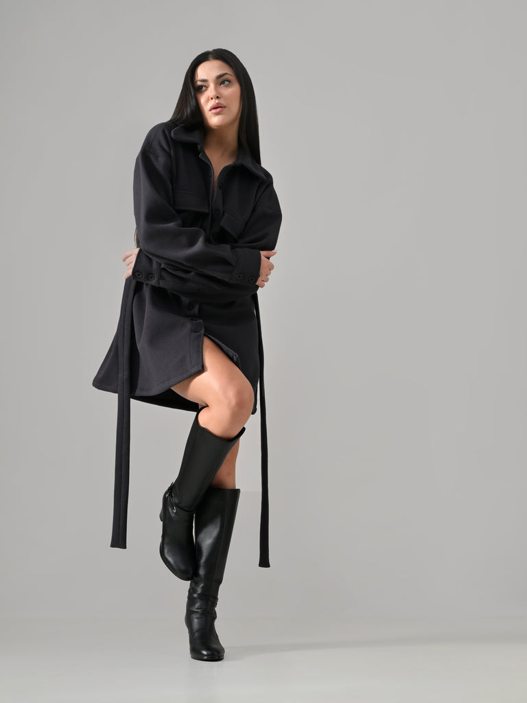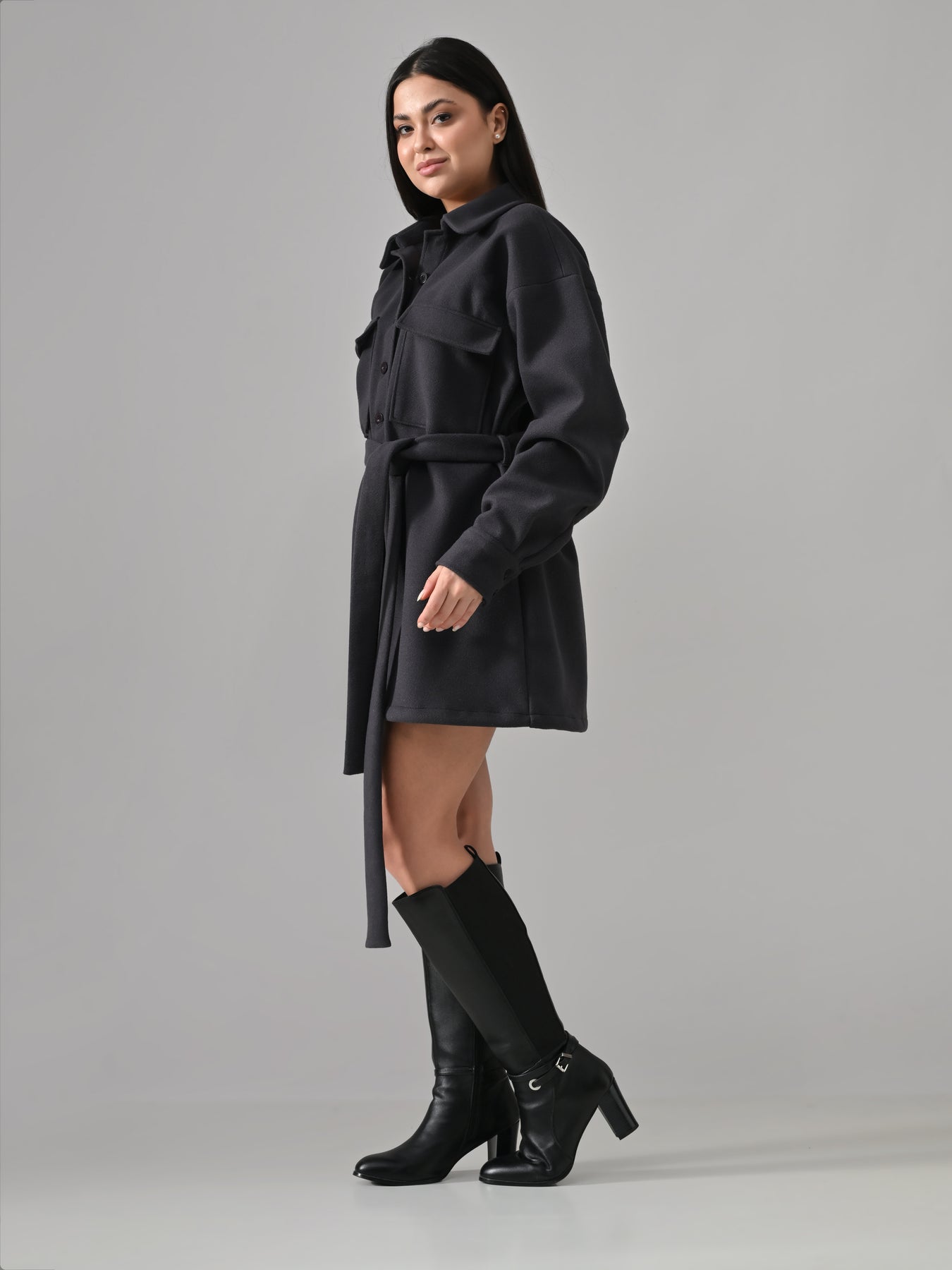 The Voyager Shacket in Charcoal Grey offers a perfect fusion of structure, warmth, and elevated casual style. Crafted from premium felt fabric, this long shacket features a clean silhouette with oversized front pockets, adding both utility and design appeal. The added belt enhances the look, allowing you to style it fitted or relaxed, making it a versatile outerwear piece for winter layering.